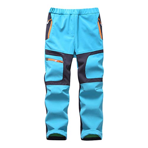 Pantaloni Trekking in Softshell Bambini Ragazze Ragazzo Impermeabile Pantaloni da Sci Neve Foderati in Pile Arrampicata Escursionismo Invernali Pantaloni Softshell,Blu1,160