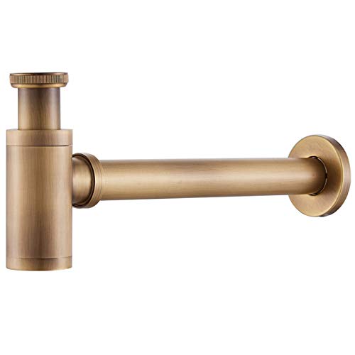 Panthem - Trappola per bottiglie in ottone, rotonda, decorativa, con tubo di prolunga da 120 mm, altezza regolabile per scarico idraulico, tubo di scarico per lavandino, vaschetta