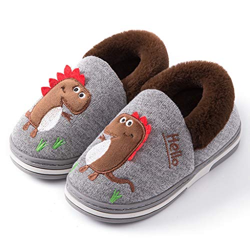 Pantofole per bambini e ragazzi, pantofole invernali, in cotone, foderate e calde, grigio., 35 cm EU