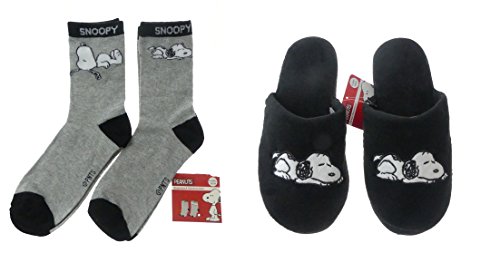 Set Ciabatte & Calzini Snoopy Donna Morbido Disney Peanuts Nero Caldo Bambini Ciabatte Slipper