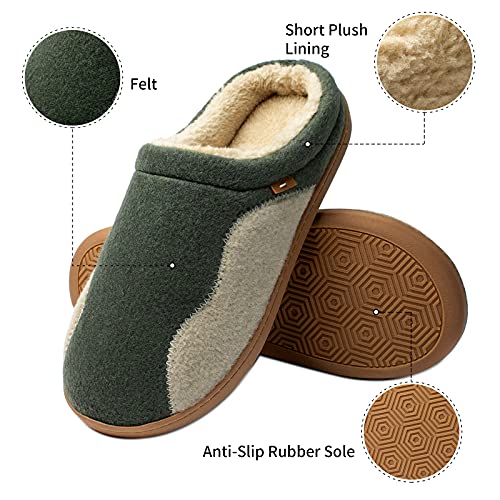 Pantofole in Cotone da Uomo, Ciabatte Calde Invernali con Memory Foam, Fodera Corta in Peluche, Ciabatte Casa Interno Esterno di Feltro con Suola Antiscivolo,Verde,39/40 EU