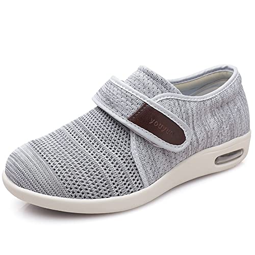 Pantofole Diabetiche In Schiuma Confortevole Scarpe larghe da passeggio Chiusura regolabile Cuscino d'aria Rete traspirante,grigio chiaro,47 Calzature Antiscivolo Per Diabetici Indoor