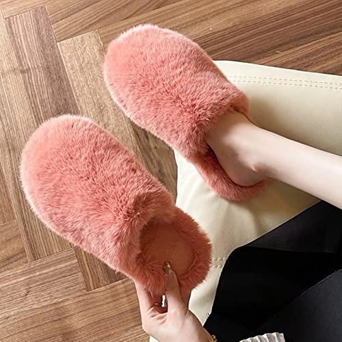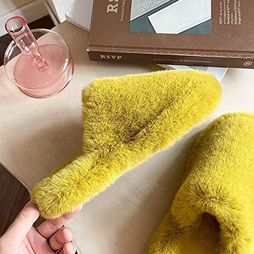 UKKO Pantofole donna Fluffy Di Pelliccia Di Pelliccia Invernale Pantofole Da Donna Chiusa Punta Plouches Pantofole A Colori Solido Custodia Calda Scarpe Da Pavimento Da Interno-Yellow,7.5