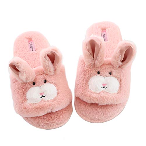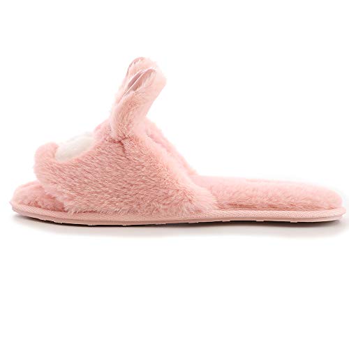 Pantofole da donna a forma di coniglietto, con punta aperta, pantofole da interno e pantofole a forma di coniglio (5 - 6 M, colore: rosa