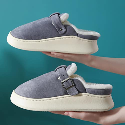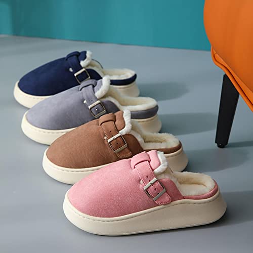 XKUN Pantofole Donna Inverno 5Cm Talloni Piattaforma Piattaforma Morbide Pantofole da Interno Tenere Calde Scarpe da Donna Spessa da Donna-Brown,37-38