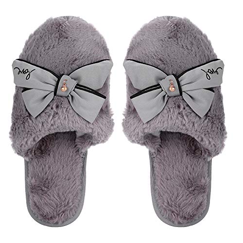 Pantofole da donna morbide e soffici per la casa invernale, morbide e comode, in peluche, antiscivolo, traspiranti, per la camera da letto, con fiocco., Grigio (Grigio), 37.5 EU