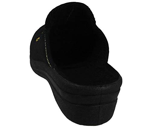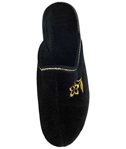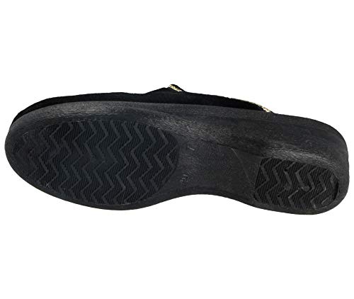 Pantofole da donna in velluto ricamato con zeppa e suola rigida e senza schienale, Nero (Nero ), 40 EU