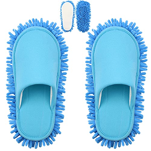 Pantofole per mocio in microfibra - Pantofole antipolvere in tela di ciniglia lavabili per spolverare per la pulizia dello sporco del pavimento in per uomini e donne - con 1 paio extra di suole