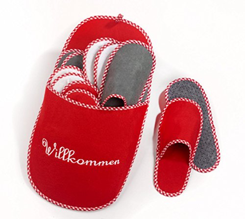 Pantofole per gli ospiti, "Wilkommen”, 6 paia, Anti Scivolo, Rosso