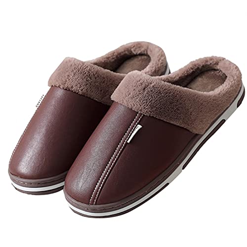 Pantofole in pelle da donna, morbide e confortevoli, con imbottitura in cotone, antiscivolo, per l'inverno, marrone, 46 EU
