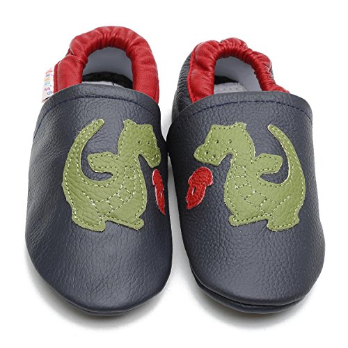 Liya's Pantofole in pelle con suola in gomma - #655 drago in blu scuro
