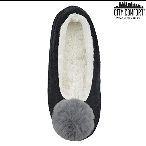 Pantofole Peluche con Pom Pom Ciabatte Donna Babbucce Invernali di Pelliccia Ecologica Arcobaleno Rosa Nero (38/39 EU, Nero)