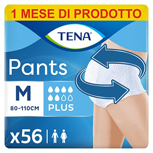 ARTICOLO CONSEGNATO: 1 confezione scorta mensile con 4 pacchi x 14 TENA Pants Plus Medium (giro fianchi: da 80 a 110 cm) / 56 mutandine assorbenti per perdite urinarie