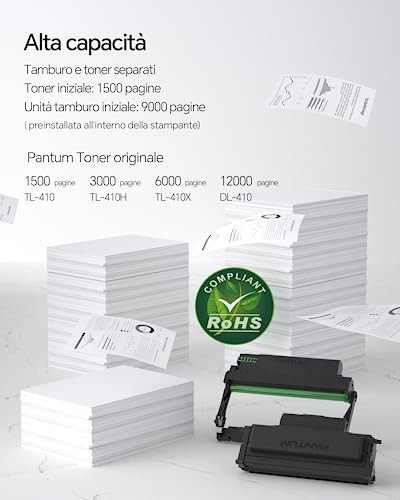 Garanzia standard di un anno contro i difetti di fabbricazione dalla data di acquisto. Servizio clienti online Pantum disponibile