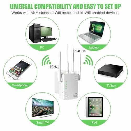 【 Modalità multifunzionale 】: Questo potenziatore WiFi wireless da 1200 Mbps è compatibile con WIFI 4/5/6, WiFi 4: 802.11n/g/g/b, WiFi 5: 802.11n/g/b/ac, WiFi 6: 802.11n/g/b/ac/ax e dispone di una porta LAN/WAN, adatta a qualsiasi router, modem, set-top box o punto di accesso wireless. Modalità AP / ripetitore / router può facilmente soddisfare diverse esigenze.
