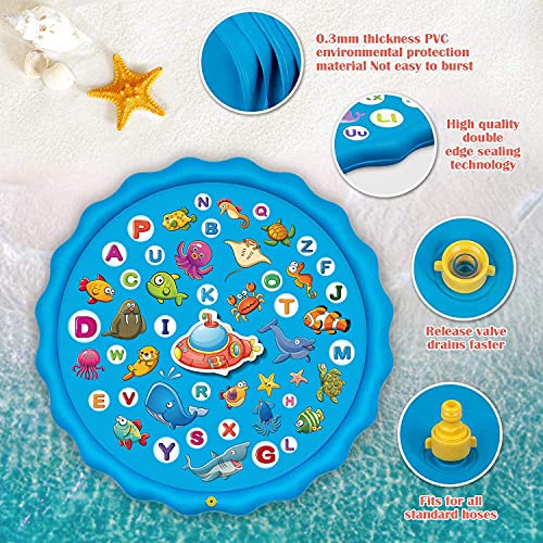 Imparare giocando: L'irrigatore per bambini è più di un giocattolo acquatico, è anche una divertente piscina gonfiabile educativa per bambini. I tuoi piccoli possono imparare l'alfabeto, gli animali e le lettere divertendosi. Il suo colore vivido sarebbe molto attraente per i bambini e stimolerebbe la loro crescita cerebrale.