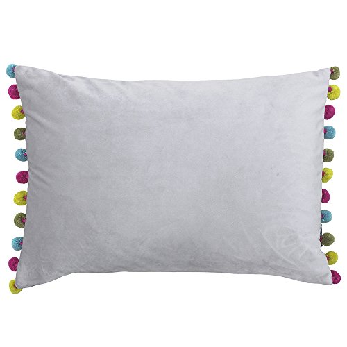 Questo vivace cuscino presenta bordi in velluto pompon in colori a contrasto.