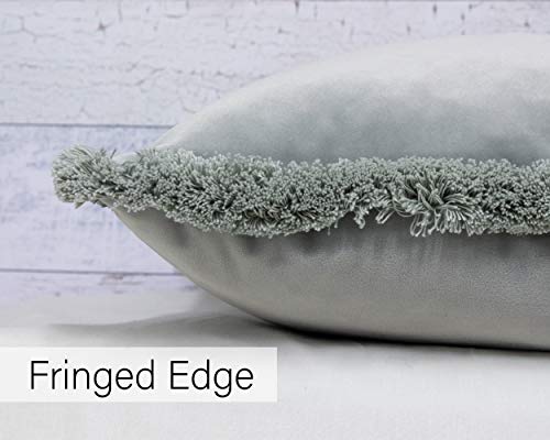 Riva Paoletti Freya - Copricuscino in velluto grigio super morbido, con frange in cotone, lavabile in lavatrice, 100% poliestere, 45 x 45 cm, progettato nel Regno Unito, poliestere argento, 45 x 45 cm