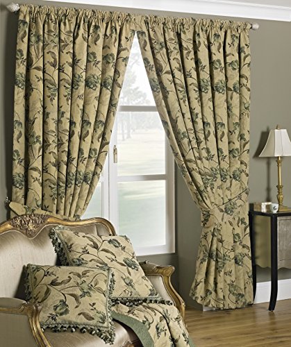 Paoletti Garda Chenille Jacquard Deluxe Coppia Tende plissettate, 66 x 72 (168 x 183 cm), Verde