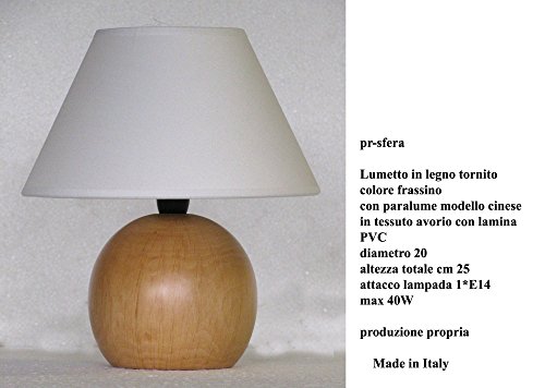 Lampada lumetto abat jour da comodino sfera in legno tornito con paralume;
