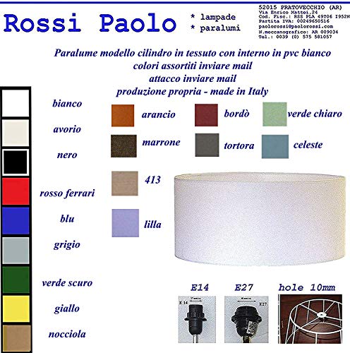 Paolo Rossi paralume moderno cilindro in tessuto e PVC, colori a scelta - produzione propria - made in Italy (cm 22)
