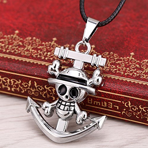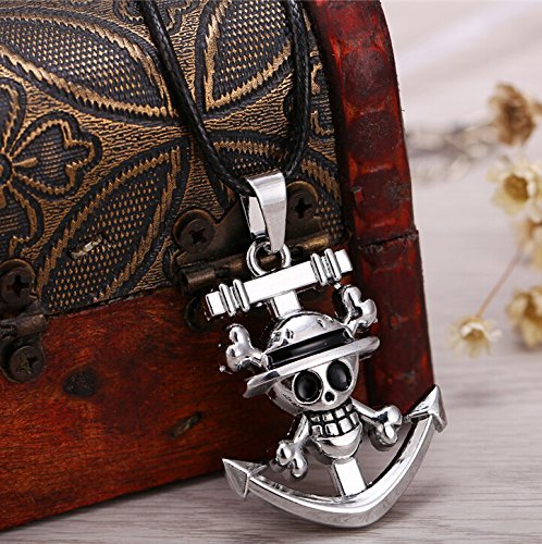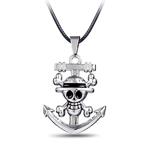 Collana con ciondolo a forma di ancora e simbolo dei pirati “Jolly Roger”, di One Piece Monkey D. Ruffy.