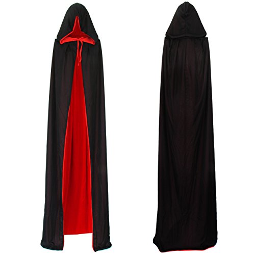 Papapanda Vampiro Mantello Cappuccio Nero Rosso per Bambini o Aulti Halloween Dracula Cosplay (170cm)