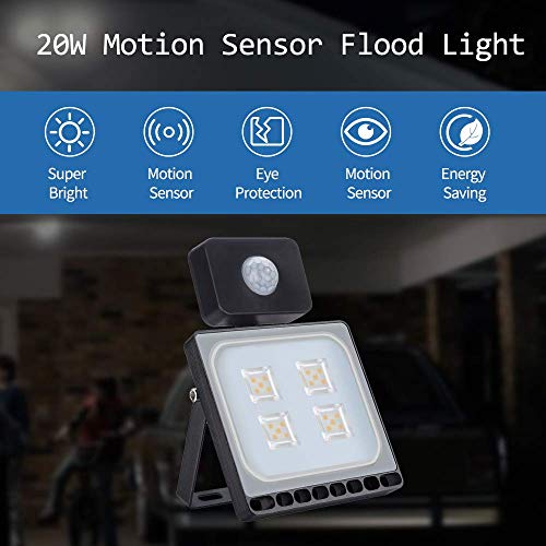 Papasbox Faretto Sensore di Movimento, 20W LED illuminazione di Sicurezza Esterno, 2000lm, Bianco Caldo 3000K, IP67 Impermeabile per Giardino, Cortile, Strada, Campo