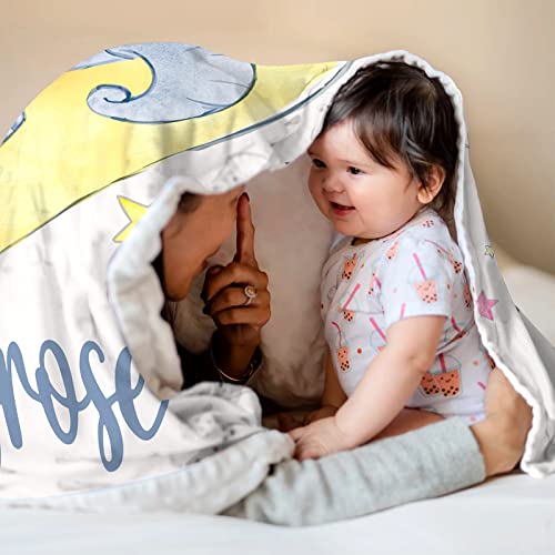 Papasgix Coperta Neonato Neonata Bambini Personalizzata con Nome,Simpatica Coperta a Tema Elefante,Morbida e Spessa Bebè Coperta per Compleanno Natale Personalizzati Regalo(Elefante Luna,70X100CM)