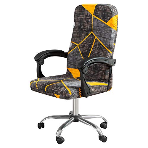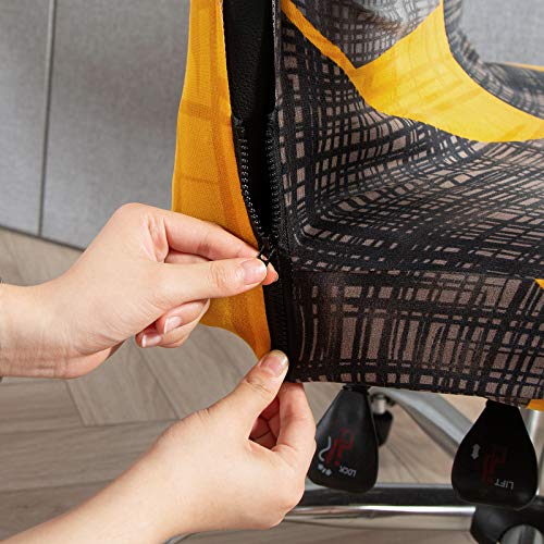 Papasgix Coprisedia da Ufficio Computer Copripoltrona Coprisedili Moderno Elasticizzato Coprisedili Rimovibile per Sedia Girevole da Ufficio con Braccioli (Sedia Non Inclusa)(Giallo/Nero,Medium)