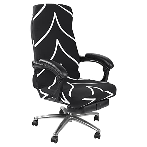 Papasgix Coprisedia Ufficio Elasticizzato con Schienale, Coprisedia da Computer Girevole Copripoltrona Coprisedili Rimovibile per Sedia Girevole da Ufficio con Braccioli(Linea Nera,Medium)
