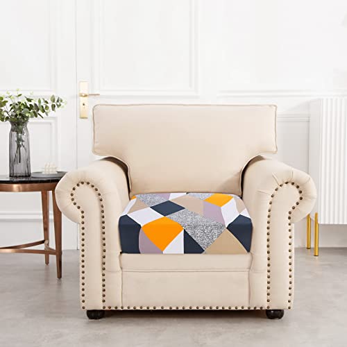 Papasgix Fodere per Cuscini per Divano Elasticizzati,1 Posto Copriseduta Divano Stampati Rimovibili&Lavabile,Coprisedile Divano Antiscivolo con Fondo Elastico per Soggiorno,Camper (Un Posto, Arancio)