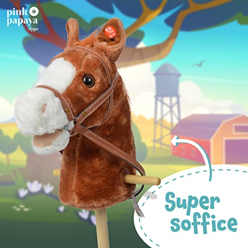 Pink Papaya Cavalluccio con Bastone, Mr. Cholcolate, splendido Cavallo Giocattolo di Peluche con Funzione Sonora: nitrito e Suono del Galoppo - Colore: Marrone con criniera Marrone