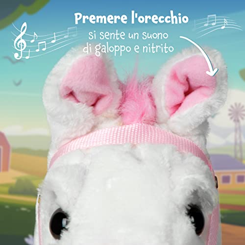 Pink Papaya Cavalluccio con Bastone, Lilly, splendido Cavallo Giocattolo di Peluche con Funzione Sonora: nitrito e Suono del Galoppo - Colore: Bianco con criniera Rosa