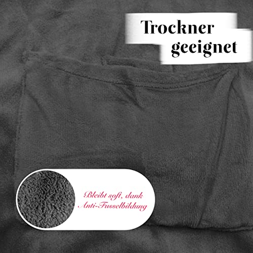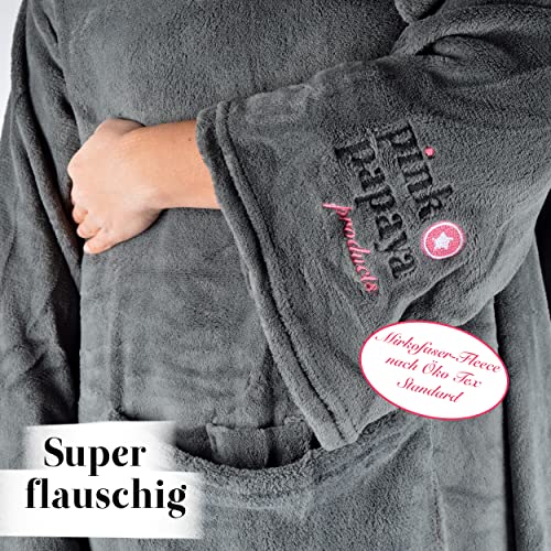 Pink Papaya Snug Me Deluxe, coperta da divano con maniche e tasche extra sia davanti che per i piedi, 170 cm x 185 cm, Coperta plaid in pile coral 220 g/m² - Charcoal