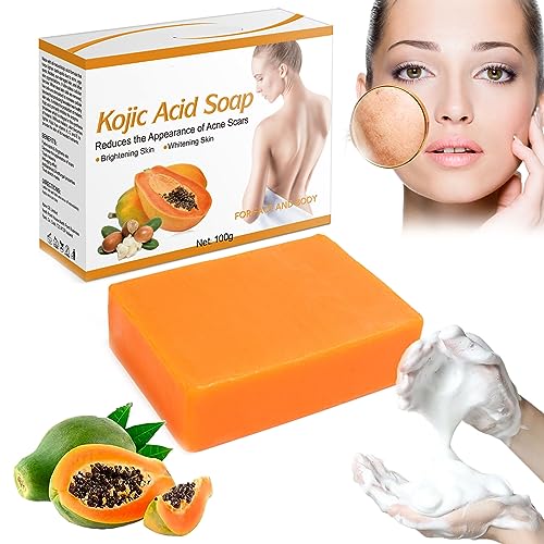 Papaya Kojic Acid Soap, Papaya Kojic Soap, Kojic Acid Soap for Hyperpigmentation, Kojic Papaya Soap Skin Lightening, Papaya Whitening Soap Bar for Dark Spots, Acne (1PCS)
