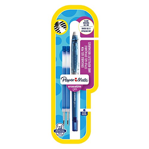 Paper Mate Erasable Gel, penna a punta media da 0,7 mm, blu + 2 ricariche