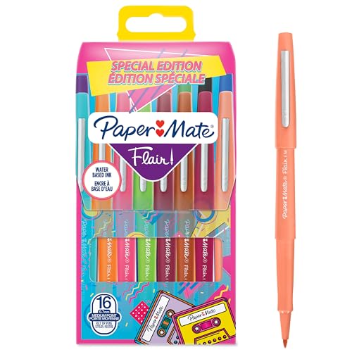PAPER MATE Flair Pennarelli con punta in feltro | punta media (0,7 mm) | assortimento di colori Retro | Set da 16 pezzi
