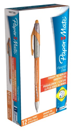 Paper Mate Flexgrip Elite Penna a Sfera Retrattile, Punta Media (1,4 mm), Inchiostro nero Boîte de 12 arancione