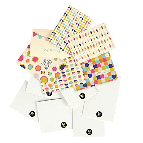 Confezione di biglietti per compleanno. Include 48 biglietti di auguri "Happy Birthday" in 6 motivi geometrici rétro.