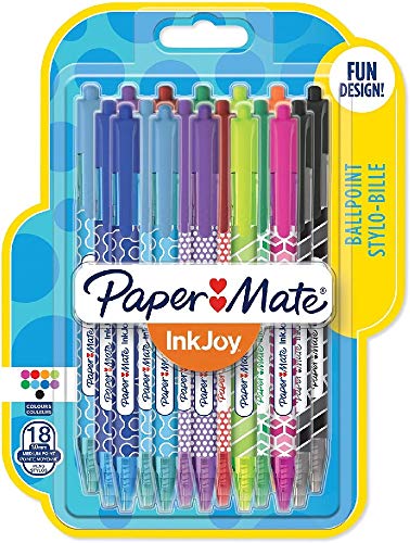 Paper Mate InkJoy Wrap penne a sfera, punta media retrattile, colori assortiti, confezione da 18