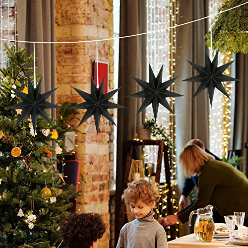 【Decorazione stella di carta】 Decorazione natalizia stella di carta nera, 4 stelle pieghevoli Decorazione natalizia molto adatta per Natale, vetrine, decorazioni per interni ed esterni.