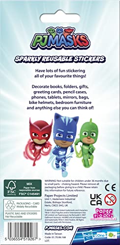 Paper Projects Adesivi Scintillanti PJ Masks Heroes | Prodotto con Licenza Ufficiale | Riutilizzabili su superfici Non porose, Colore Bianco, 19.5cm x 9.5cm, 01.70.06.168
