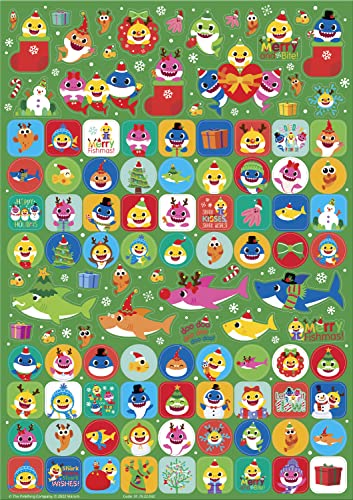 Paper Projects Baby Shark Christmas Mega Sticker Pack Tre tipi di adesivi (150 totali) riutilizzabili su superfici non porose 01.70.22.032 29,7 cm x 21 cm