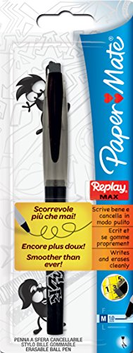 Paper Mate Replay Max cancellabile penna a sfera, punta media, 1,0 mm, colore: nero