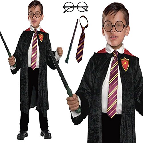 Questo fantastico set da 4 pezzi include: Mantello con cappuccio guidata + cravatta + bacchetta + occhiali rotondi