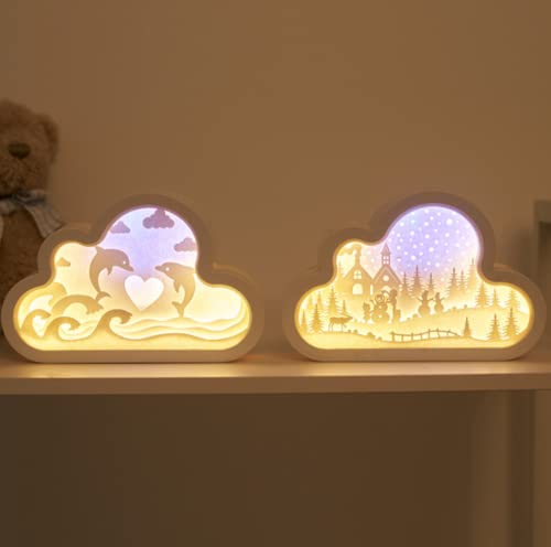 3D Papercut Light Boxes, Scultura di Carta Luce Notturna Cloud Shadow Box Funzionamento a Batteria USB (I)