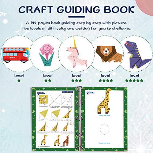 PAPERKIDDO Carta Origami, 152PCS Libro Origami con Libretto Didattico Colorato 72PCS Doppio Lato Stampato Kit di Carta Origami per Bambini Adulti Principianti Arti e Mestieri Lezioni