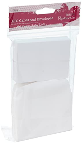 Papermania ATC - Cartoncini e Buste, Confezione da 50, Colore Bianco