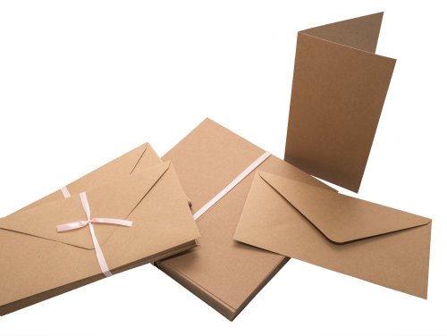 Papermania, Set di Fogli Alti di Carta Riciclata con Buste, 10,5 x 21 cm, 50 pz, Marrone (Braun (Karton))